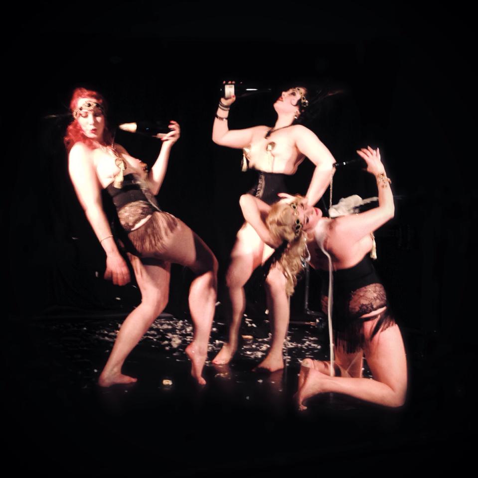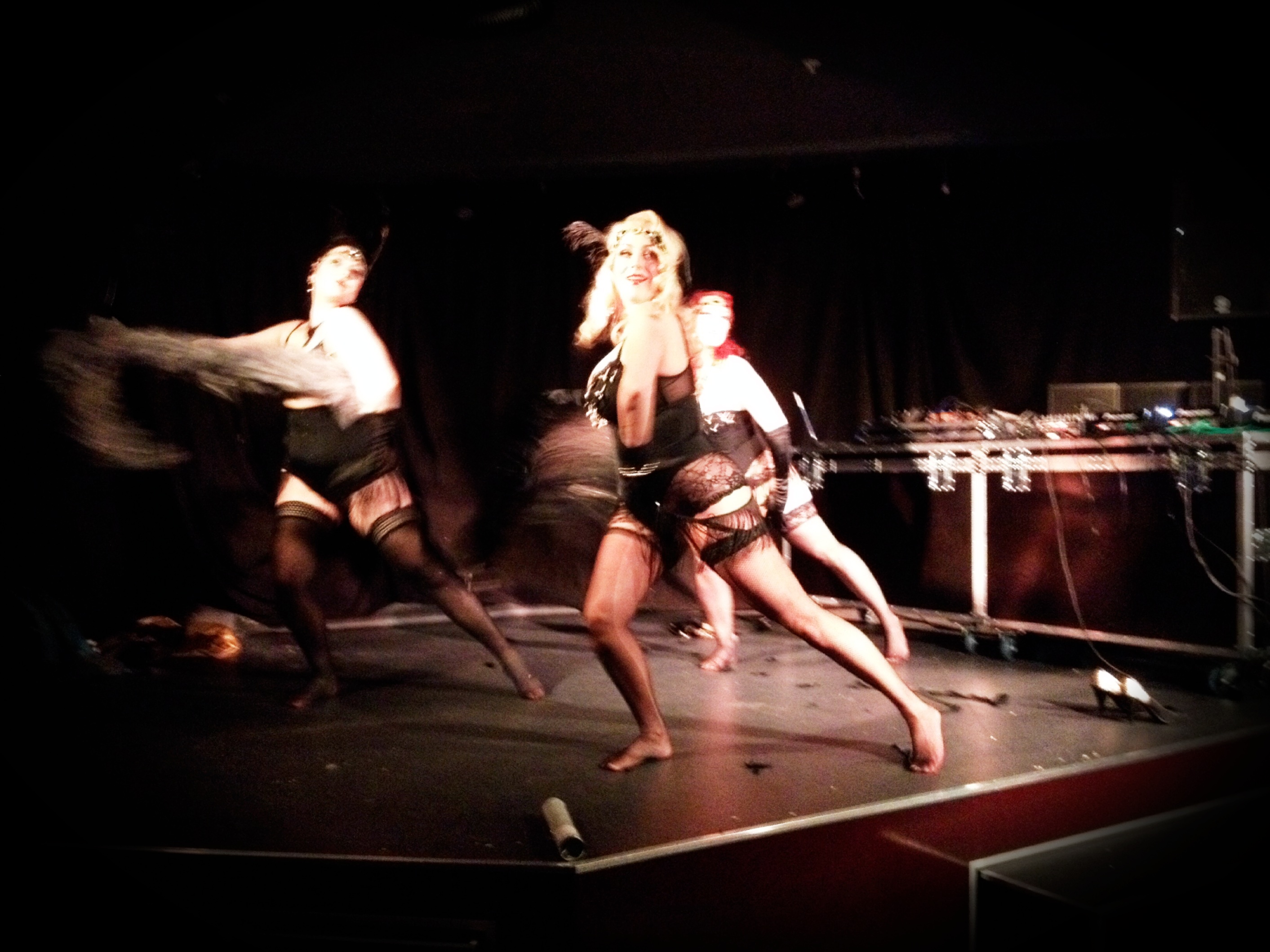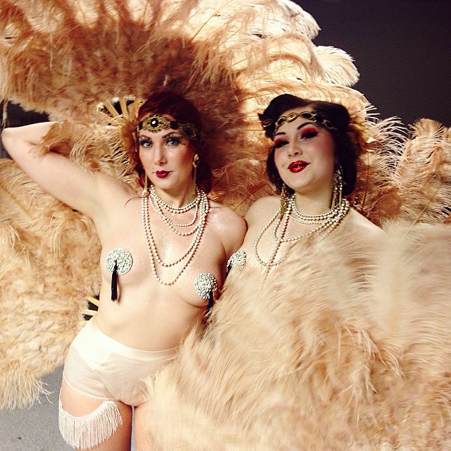 Bildet er tatt i forbindelse med Fifi Von Tassel presents: Titsmachine. (Tok du den?) Vi var så heldige å få representere 1920-tallet med vår drunken flappers-act. Dessuten fikk vi være med i en større viftekoreografi dedikert til 2000-tallet. Ser du det for deg? Vi lover at det var en uforglemmelig kveld med mange meget, meget minneverdige artister og acter.